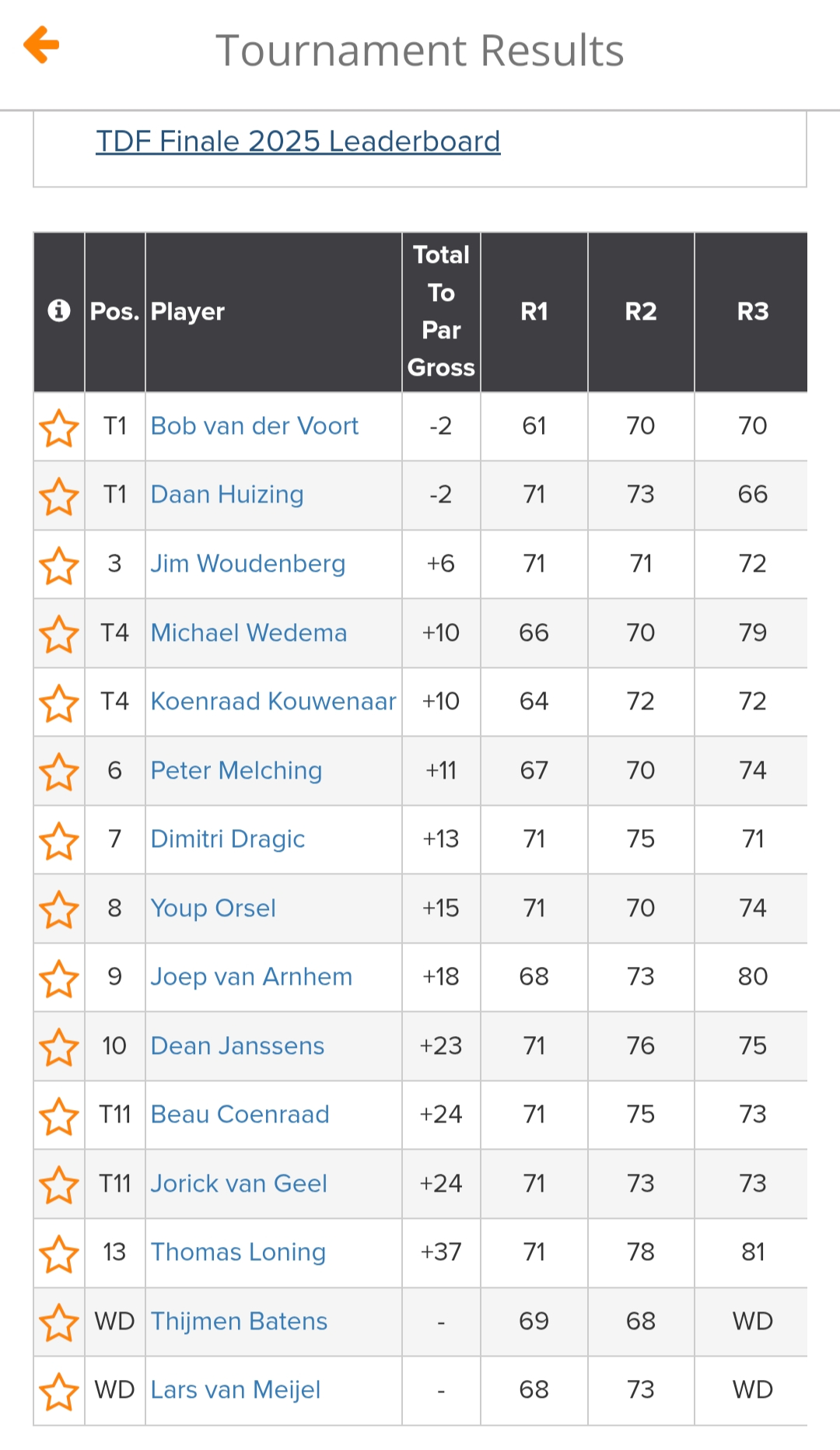 Uitslagen zijn te vinden onder de dikgedrukte tekst